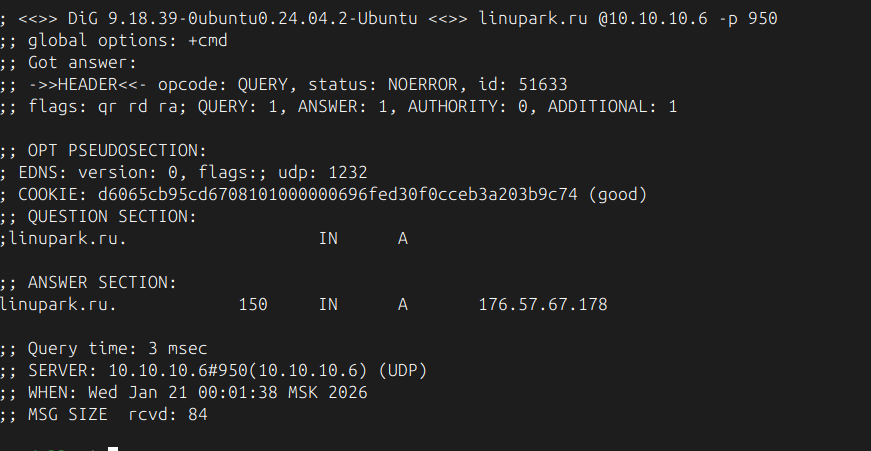 dig CNAME www.linupark.ru @1.1.1.1; dig linupark.ru @10.10.10.6 -p 950;